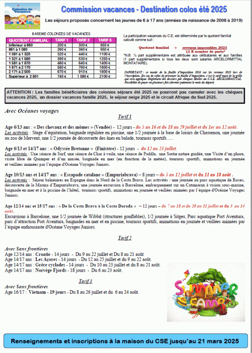 (*possibilité de déduire votre participation vacances 2026 selon la grille ci-dessous)